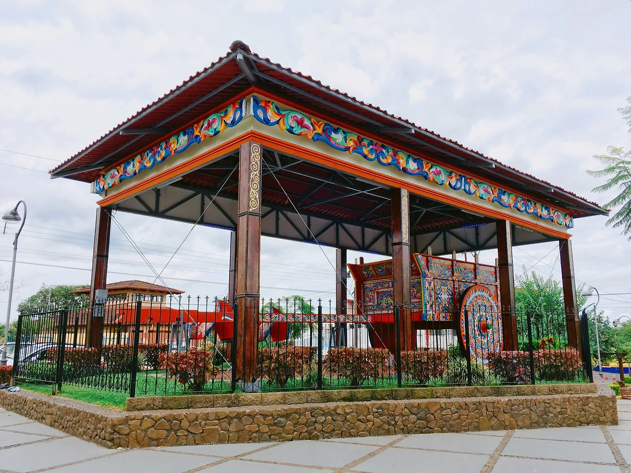 Parque Central de Sarchí Norte (Sarchí)_빠르께 쎈뜨랄 데 사르치 노르떼 (사르치) : 위에 있는 싸르쎄로 지역에 가는 길에 들를 수 있는 사르치. 코스타리카 전통 커피 수레를 엄청 크게 설치해 놨다. 이것만 보러 가기는 그렇고 싸르쎄로에 갈 거라면 들렀다 가는 것을 추천한다.