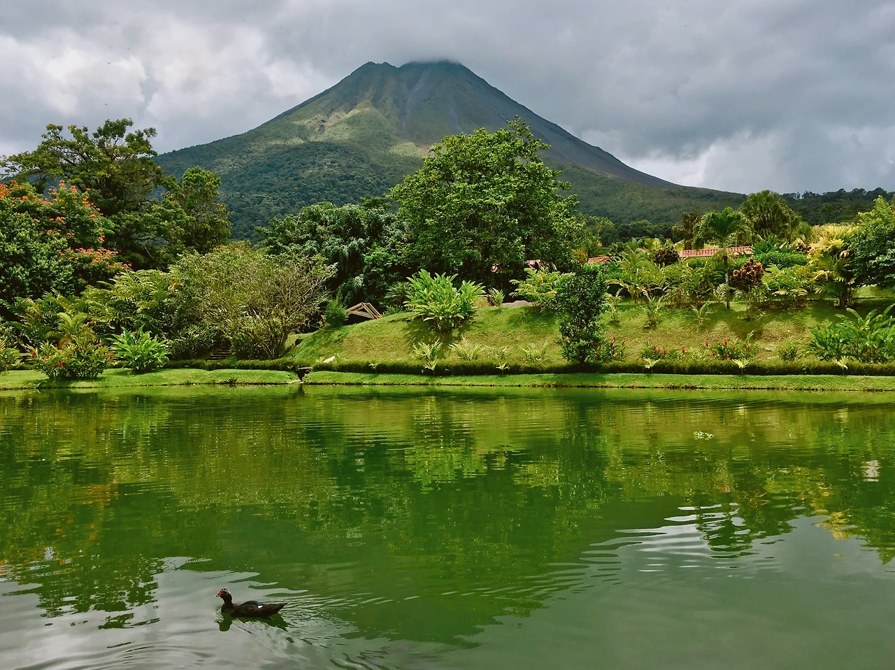 많이 알려진 여행지인 'La Fortuna(라 포르뚜나)'의 아레날 화산이다. 사람들이 많이 가는 곳에는 다 그만한 이유가 있다. 아레날 화산은 흔히 코스타리카에서 가장 완벽한 모양의 화산이라고들 하는데 보는 위치에 따라 모습이 조금씩 다르다. 십몇 년 전쯤만 해도 용암 분출을 보려고 밤에 아레날 화산을 보러 가는 사람들이 많았다는데 지금은 활동을 잠시 멈췄다. 코스타리카의 온천 사업이 처음으로 시작된 곳이라 아레날 주변에는 온천 호텔이 많다. 제일 유명한 호텔은 'Tabacón(따바꼰)'이라는 호텔인데 하루 숙박비가 40만 원 정도로 비싼 편이다. 그러나 '원데이 패스'라는 것이 있어 95달러에 온천욕을 즐길 수 있고 점심, 저녁 뷔페를 먹을 수 있다. 점심, 저녁 둘 중에 하나만 선택할 수도 있다고 한다. 사실 아직 안 가 봐서 귀국하기 전에 한번 가 볼 생각이다. 하지만 아레날 화산 주변의 호텔에서는 대부분 온천욕을 할 수 있고 시설도 좋은 곳이 많다. 개인적으로는 'Los Lagos(로스 라고스)'라는 호텔을 좋아한다. 숙박비는 하루에 15만 원 정도이고 호텔 내에서 추가금을 내고 승마를 할 수 있는데 들판을 지나 숲을 지나 아레날 화산이 가장 잘 보이는 곳으로 간다. 승마가 처음이었고 비 오는 날에 했는데도 나름대로 운치 있고 좋았다.