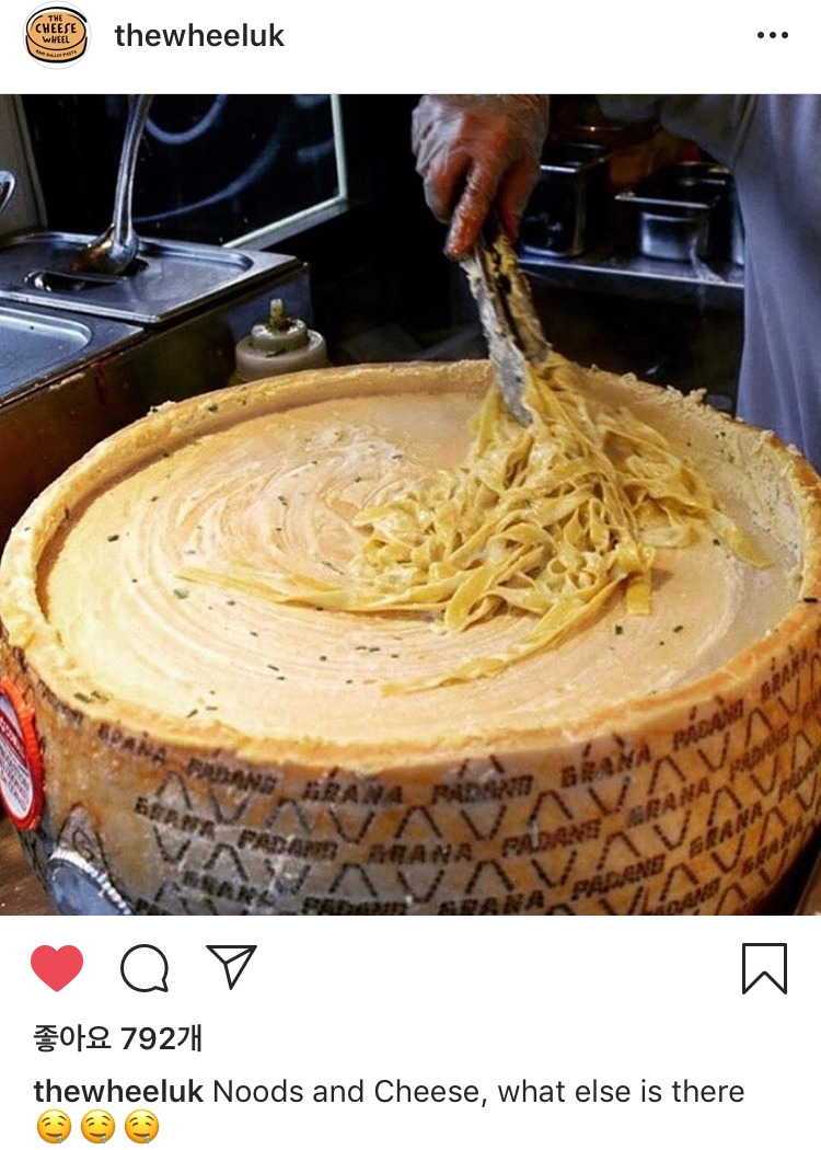시그니처 메뉴는 식당의 상징과도 같은 존재입니다. 프로그램에 등장한 모든 팀들은 자신들만의 강력한 시그니쳐 메뉴를 가지고 있었죠. 그중 눈에 띈 메뉴 중 하난가 바로 치즈 휠 파스타입니다. 만드는 방식부터 독특합니다. 먼저 더블크림과 함께 익힌 파스타면을 팬에서 익힌 후에 거대한 그라나 파다노 치즈 휠에다 넣고 치즈가 면에 충분히 묻어 나올 때까지 돌려주는 것이죠. 마지막으로 양젖 치즈를 얹어 마무리해줍니다. 어떻게 맛이 없을 수가 있을까요. 여기에 더해 치즈 휠이라는 요소 하나만으로도 온라인상에서 바이럴이 될만한 훌륭한 콘텐츠도 가졌으니 더할 나위 없는 기획력과 사업성을 가진 브랜드입니다.