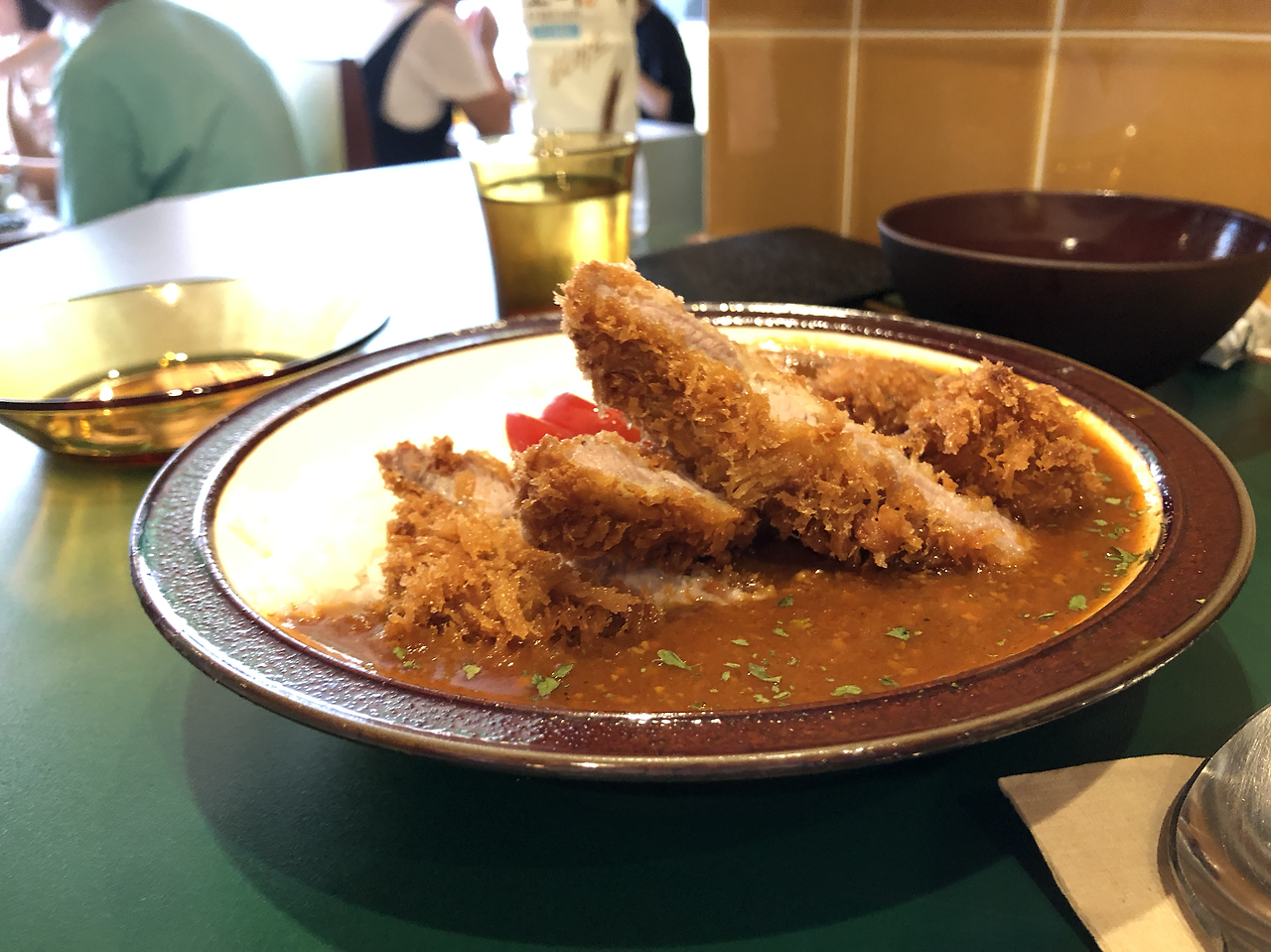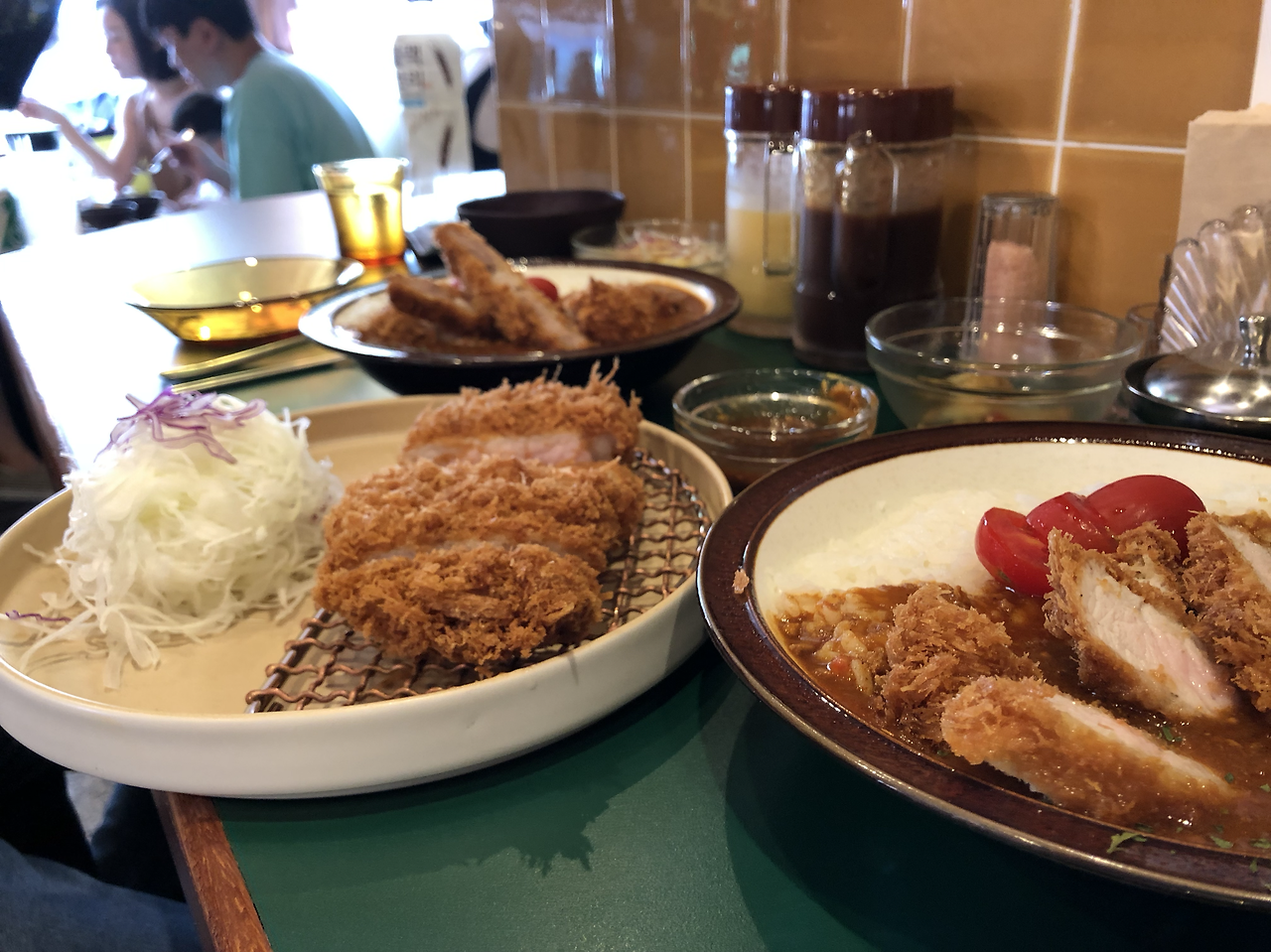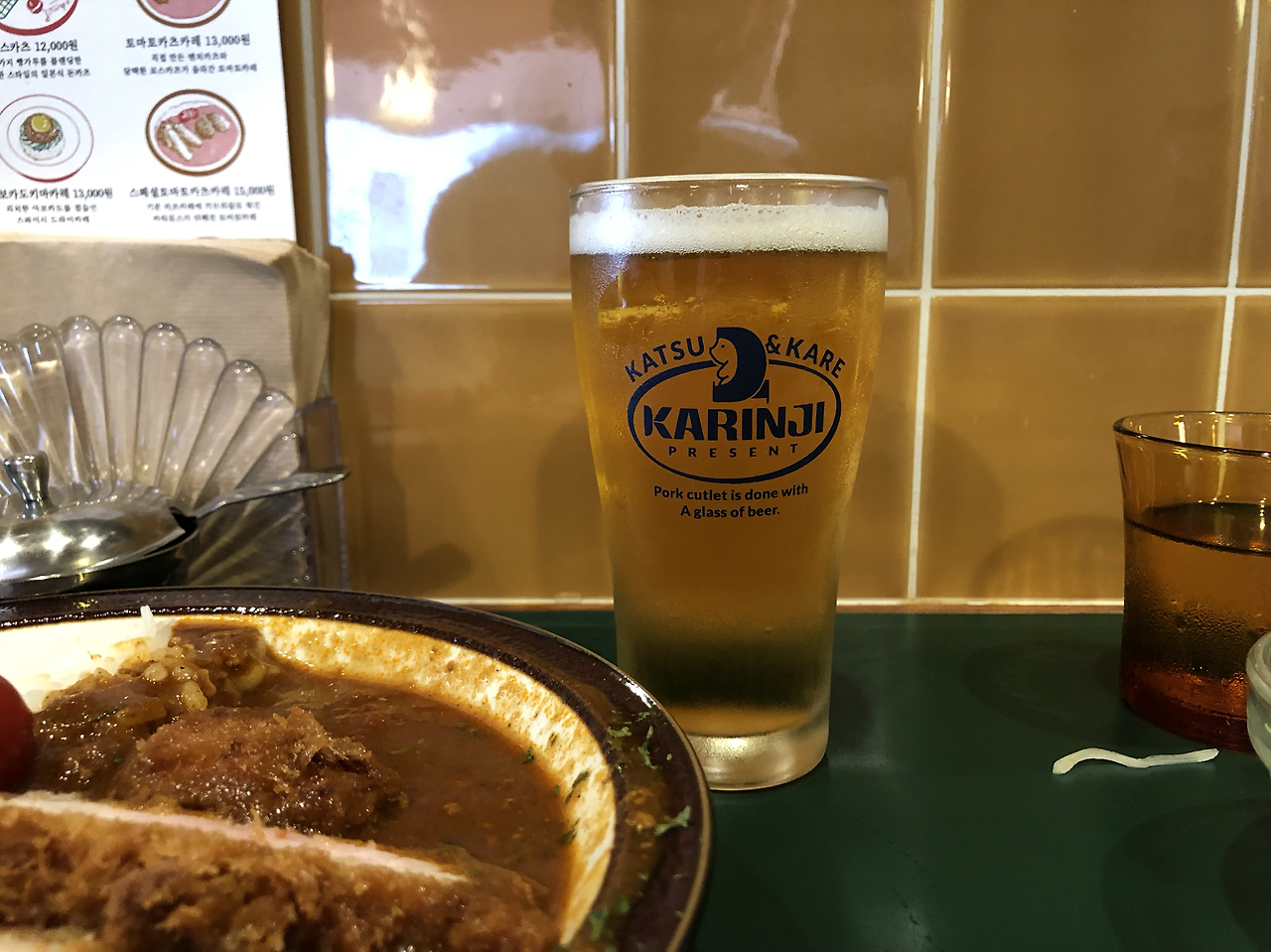 그날은 점심이 채 지나기도 전에 맥주 한 잔이 땡기는 날씨였다. 그런 후덥지근한 날씨에도 불구하고 가게 오픈 전부터 사람들이 와서 기다리고 있었다. 남들처럼 사진도 열심히 찍었다. 40분 가량을 기다린 뒤에 드디어 입장. 주문은 3가지만 가능했는데 염탐하러 온 만큼 모두 시켰다. 로스카츠, 토마토카츠카레, 스페셜토마토카츠카레가 그것이다.