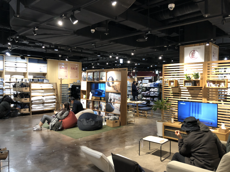 마치 딱히 살 것도 없는데 괜히 무인양품에 들르는 것처럼요. 무인양품에 자주 가 보신 분들은 눈치 채셨는지 모르겠지만 유난히 곳곳에 편하게 앉아 이야기하고 쉴 수 있는 공간들이 있습니다. 매장에 방문한 사람들은 마치 카페에 온 듯 아주 편안한 마음으로 상품들을 체험하죠. 상품을 경험하는 동시에 공간과 상품에서 나오는 무인양품만의 뉘앙스 혹은 철학을 무의식적으로 느끼고 있다고 볼 수 있습니다.