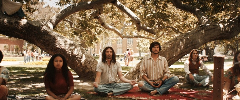 캠퍼스에서 명상 중인 영화 <스티브 잡스>의 한 장면.