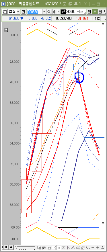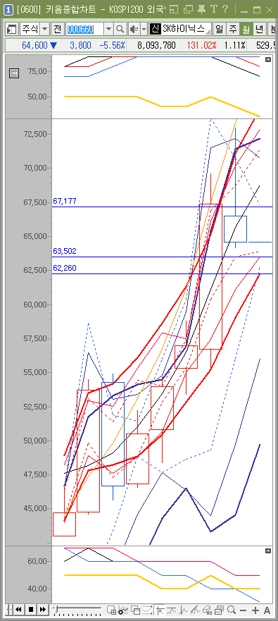 월요일에 하락이 온다면 대략 63200원까지 하락 가능한 상태라고 봅니다.