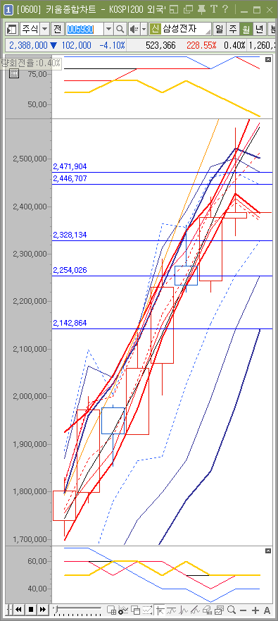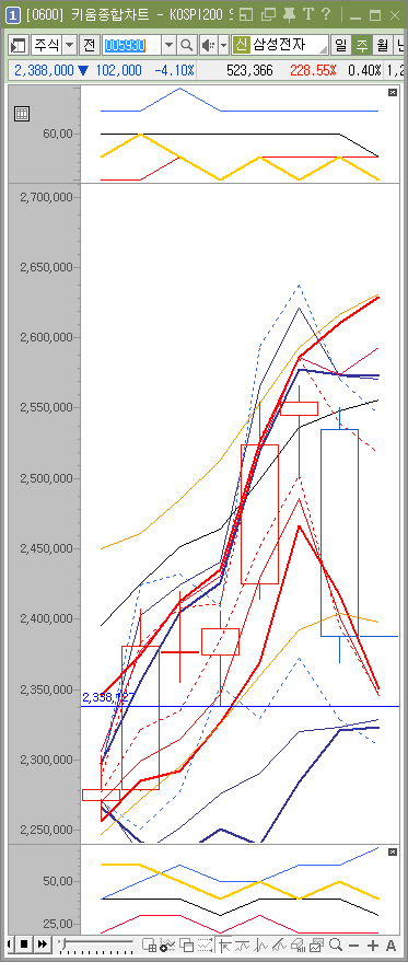 만약 2,369,000원이 무너지면 위험해 집니다. 현재 주가가 2,388,000원이므로 19,000원 정도 하락이 오게되면 2,339,000원을 보게 될 가능성이 매우 높아집니다. 이 부분만 참고하시면 될듯 합니다.