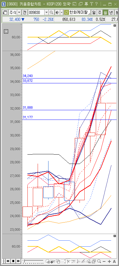 현재 주가로 보면 다음달 매수가는 31888원정도이고 목표가는 33872원정도 됩니다. 아직까지는 강한 하락의 구조는 완성하지 못했습니다. 만약 월요일 하락한다면 대략 31888원 정도이거나 최대 31777원정도로 보입니다. 아직 추세는 살아있으니 너무 과하게 반응하시지 않아도 됩니다. 적어도 아직까지는 말이죠.