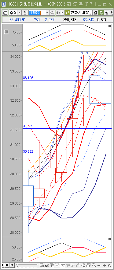 기본적인 주가 흐름은 31552원까지 내릴 수 있습니다. 오르면 33196원정도네요.