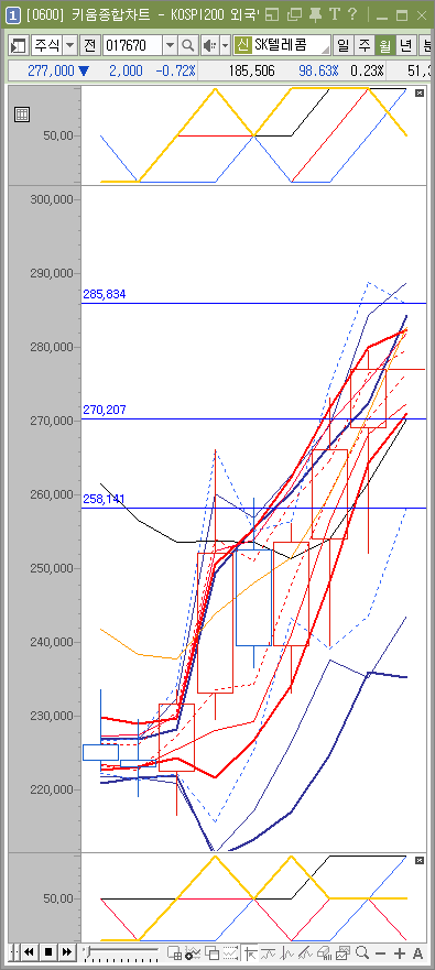 주봉과 월봉을 모두 합성해서 분석해 보면 매수가는 최대치가 270,000원입니다.