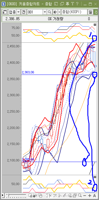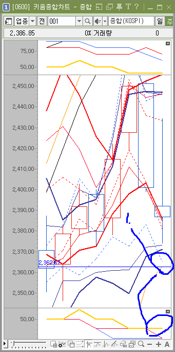 반대로 하락이 오면 2371 아래까지 보입니다. 15 포인트 추가 하락이 가능합니다.