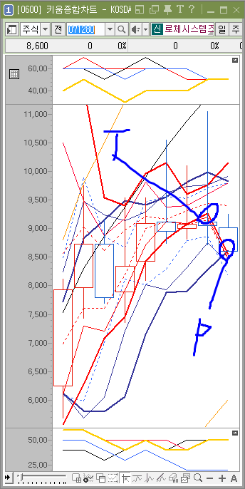 이런 상황은 추세는 죽었고 반등여부를 본다라고 해석합니다.