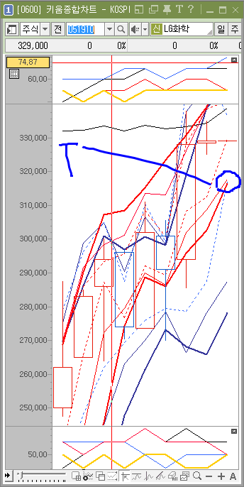 이번달엔 매수를 한다면 316000원 아래이어야 하고요.