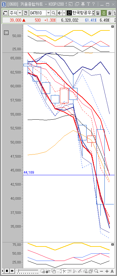 44100원으로 회귀를 기대해 보세요. 그럼 주봉상으로 다시 상승으로 전환하기 위한 움직임을 보이는 것이라고 생각할 수 있습니다.