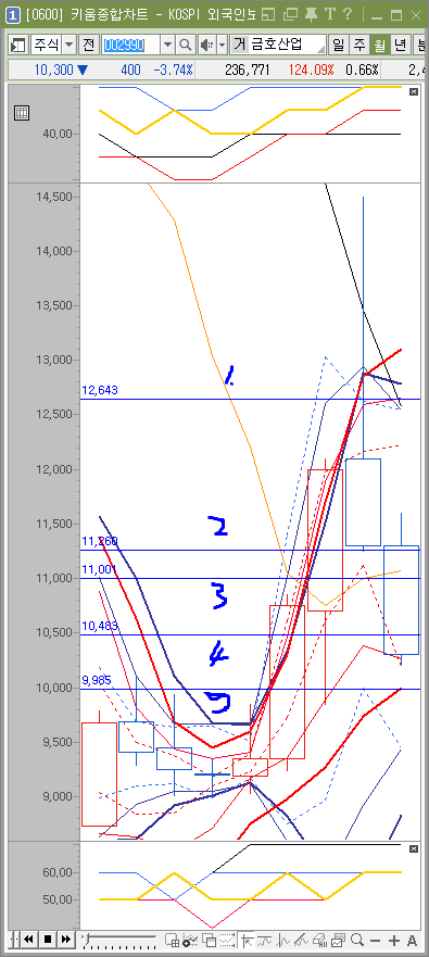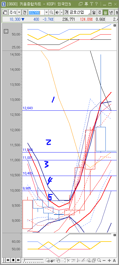 월봉으로는 메리트가 있으나 주봉상으로는 아무런 신호가 없는 상태입니다.