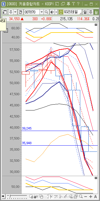 반등 목표치는 35900원 ~ 39200원 수준이지만, 목표치일 뿐 아직까지 긍정적인 흐름이 보이지 않습니다.