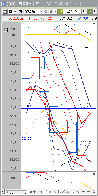 주가가 58900원 위에서 마감하면 매수는 성공적으로 봅니다.