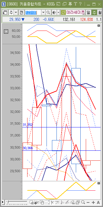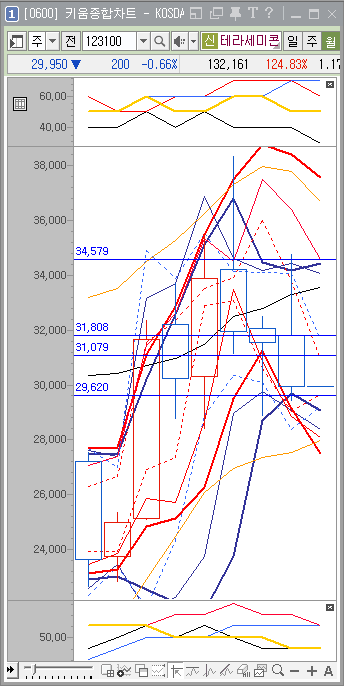 그러나 정상적인 구조라면 31000원 ~ 34500원 사이에서 고가를 만들고 하락하는 상황이 올 것으로 보입니다.