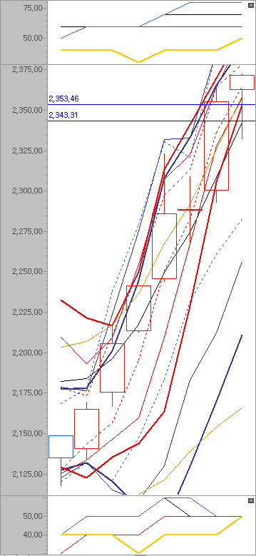 위의 화면을 보시다시피 주가는 2343 아래까지 왔었고, 종가는 2353 위에서 끝났습니다.