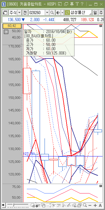 삼성물산에는 저 선이 한참 아래에 있습니다.