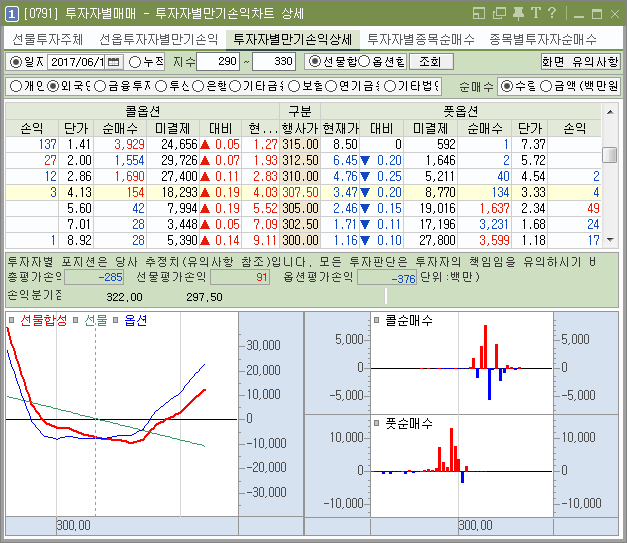 개인은 콜만 사지만 외국인은 풋도 사고 콜도 삽니다.