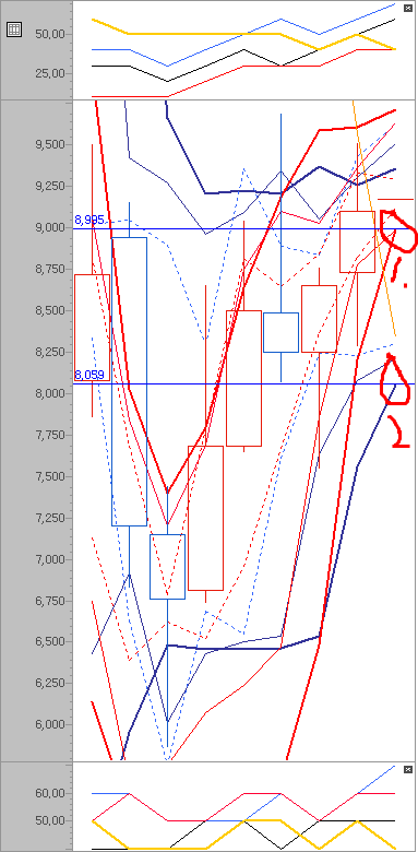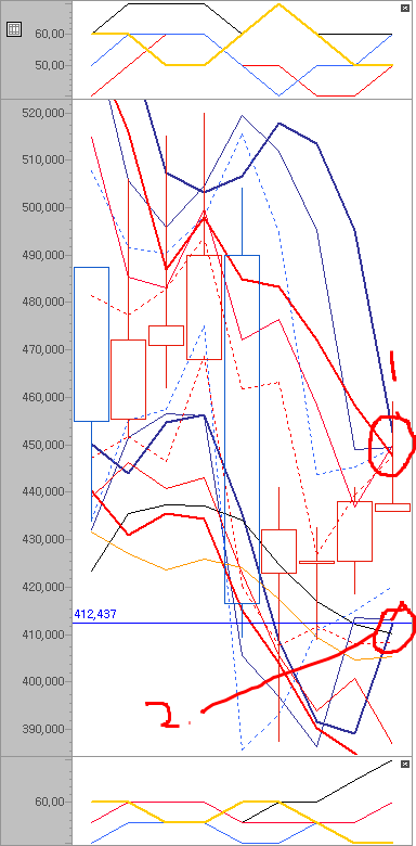 그러나 문제는 붉은색(굵은선) 선이 상향도 하향도 아니라는 것입니다. 저 선이 추세의 핵심인데 추세르 읽을 수 없는 상태에 이르게 된 것입니다.
