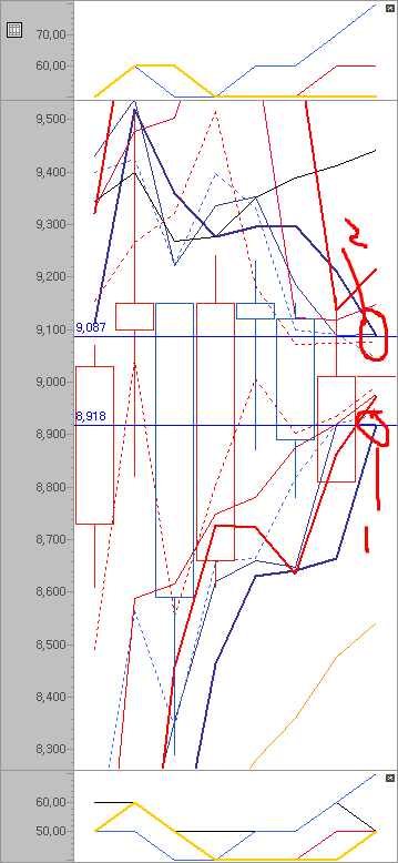 9085원 정도 위에서 물량 축소 및 청산 절차를 밟아 보는 것입니다.