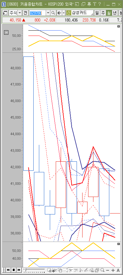 40400원 위로 매도구간입니다. 그런데 40400원에만 매도선이 있고 나머지 선들은 없습니다.
