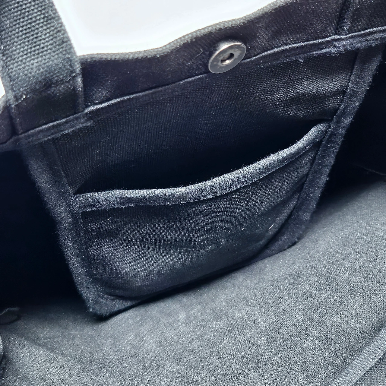 안쪽에는 작은 보조 주머니가 달려있어서 지갑, 차 키, 휴대폰 같이 자주 꺼내 사용하거나 중요한 물건을 보관하는 용도로 사용한다. 따로 바닥판이 없어서 무거운 물건을 넣으면 살짝 아래로 쳐지는 단점이 있었지만 얇은 플라스틱 판으로 바닥판을 직접 만들어 깔았더니 모양이 잘 유지되었다. 오랫동안 나를 성장시킬 도구들을 가지고 다닐 수 있도록 더 소중히 다뤄야 할 물건이다.