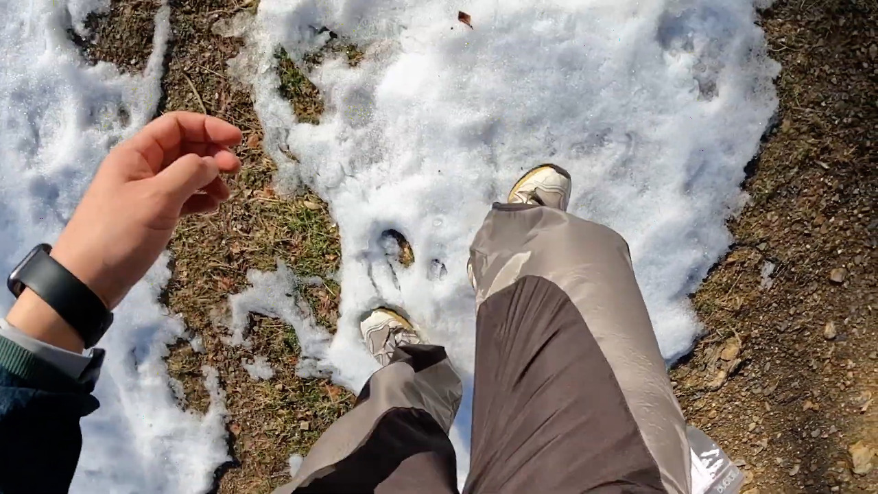 땀이 송골송골 맺혀 경량패딩을 벗게 합니다.
