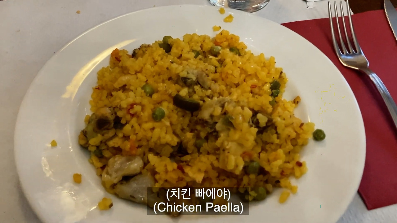 나의 첫 접시는 치킨 빠에야, 근데 기대한 빠에야는 아니고 냉동을 전자레인지에 데운 느낌?ㅋㅋ