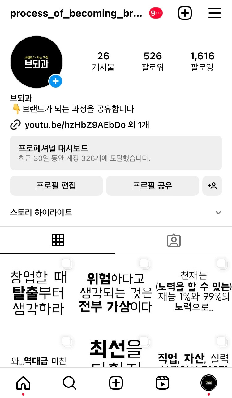- '자기계발' 계정 육성중 (브되과, 현 500명)