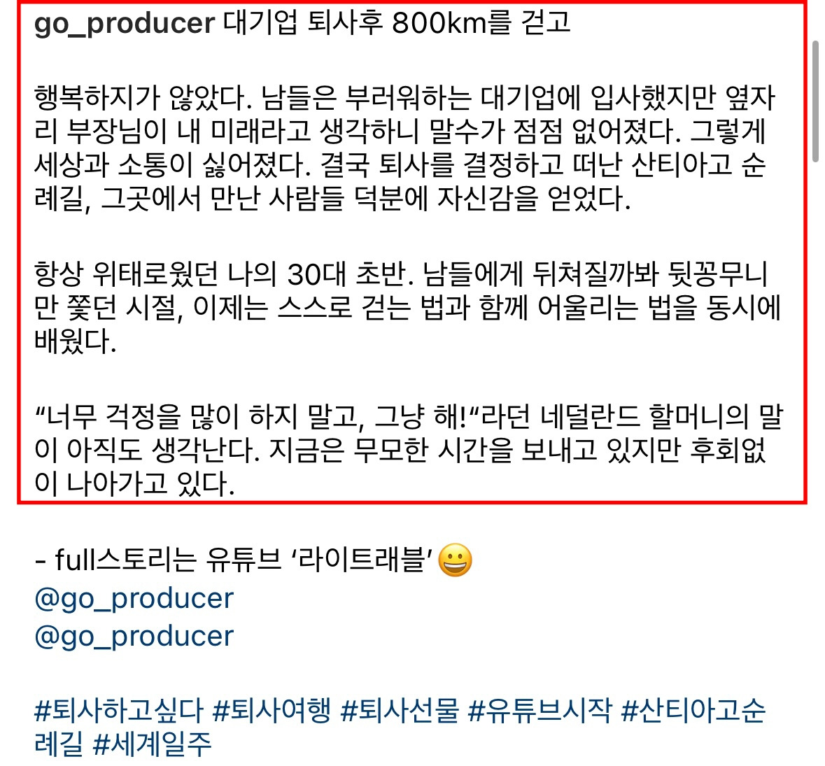 인스타그램에서는 300~500자의 캡션을 짧은 문체로 써주어여 합니다.