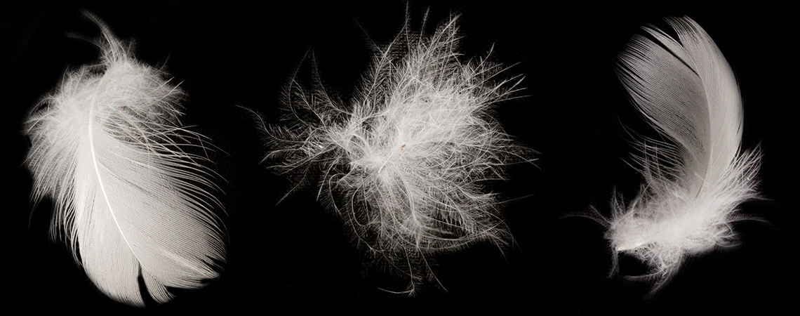 다운(down)은 거위 가슴털, 페더(feather)는 거위 목 털입니다. 다운은 페더에 비해 부드럽고 복원력이 좋고, 거위 한 마리 당 20g 정도 나오기 때문에 비쌉니다.