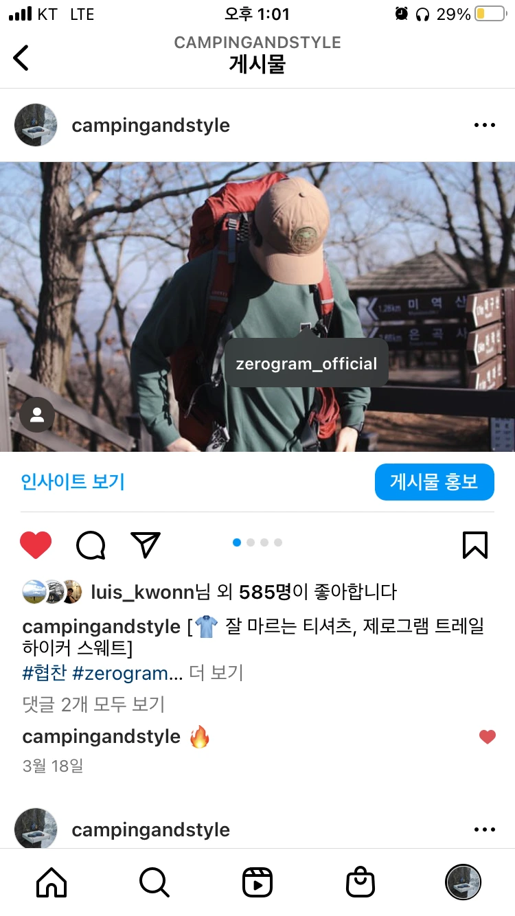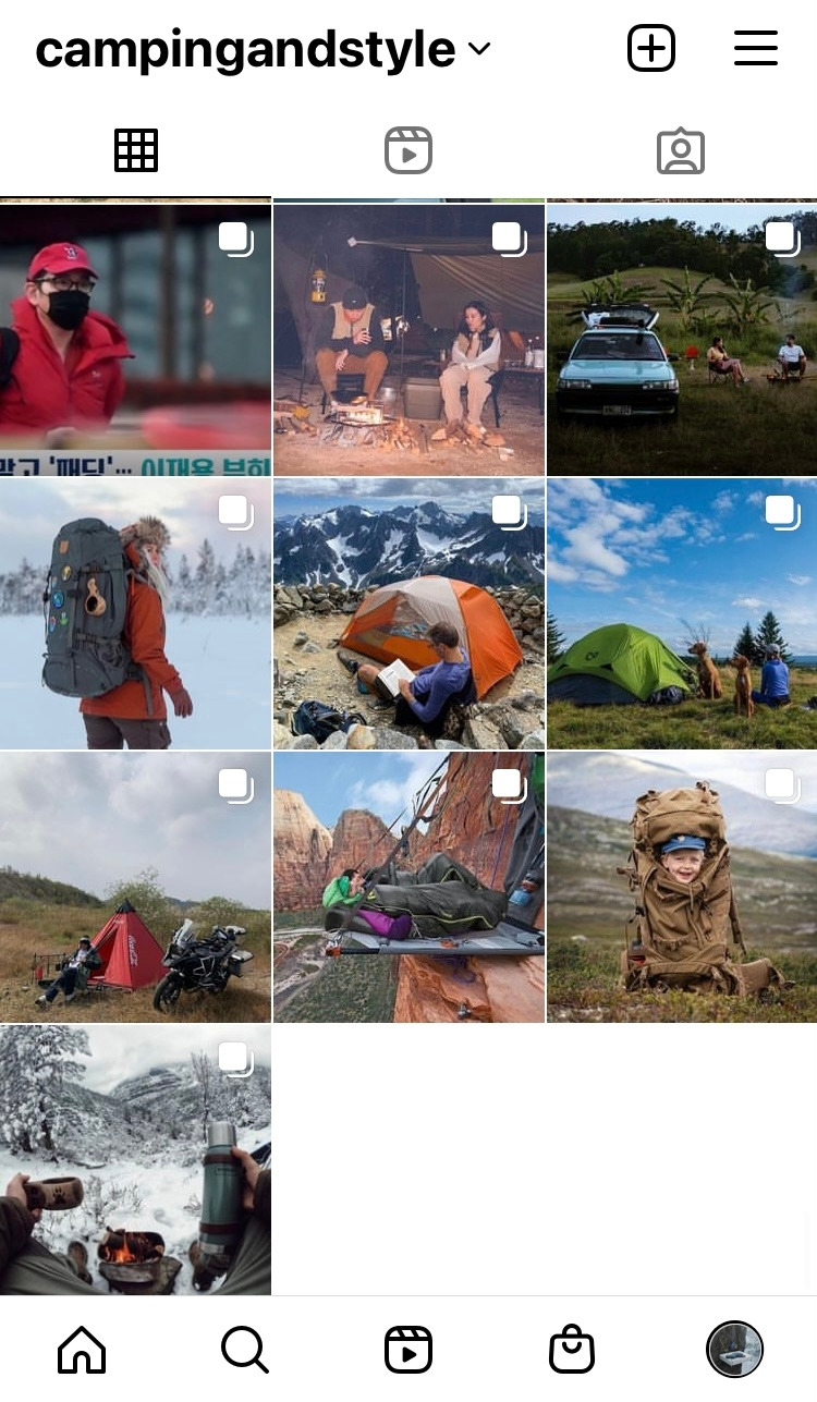 주제를 정하고 콘텐츠를 올리다 보면 좋아요가 많거나 노출이 잘 되는 스타일을 찾을 수 있을 것이다. 나는 다른 사람들의 캠핑 사진을 소개하는 콘텐츠가 반응이 좋아서 계속하고 있다.