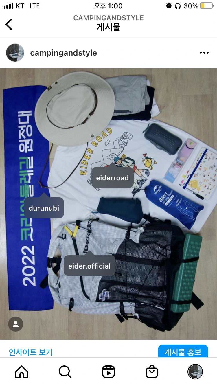 1) 유행하고 있는 특정 브랜드 제품 해시태그를 검색한다.