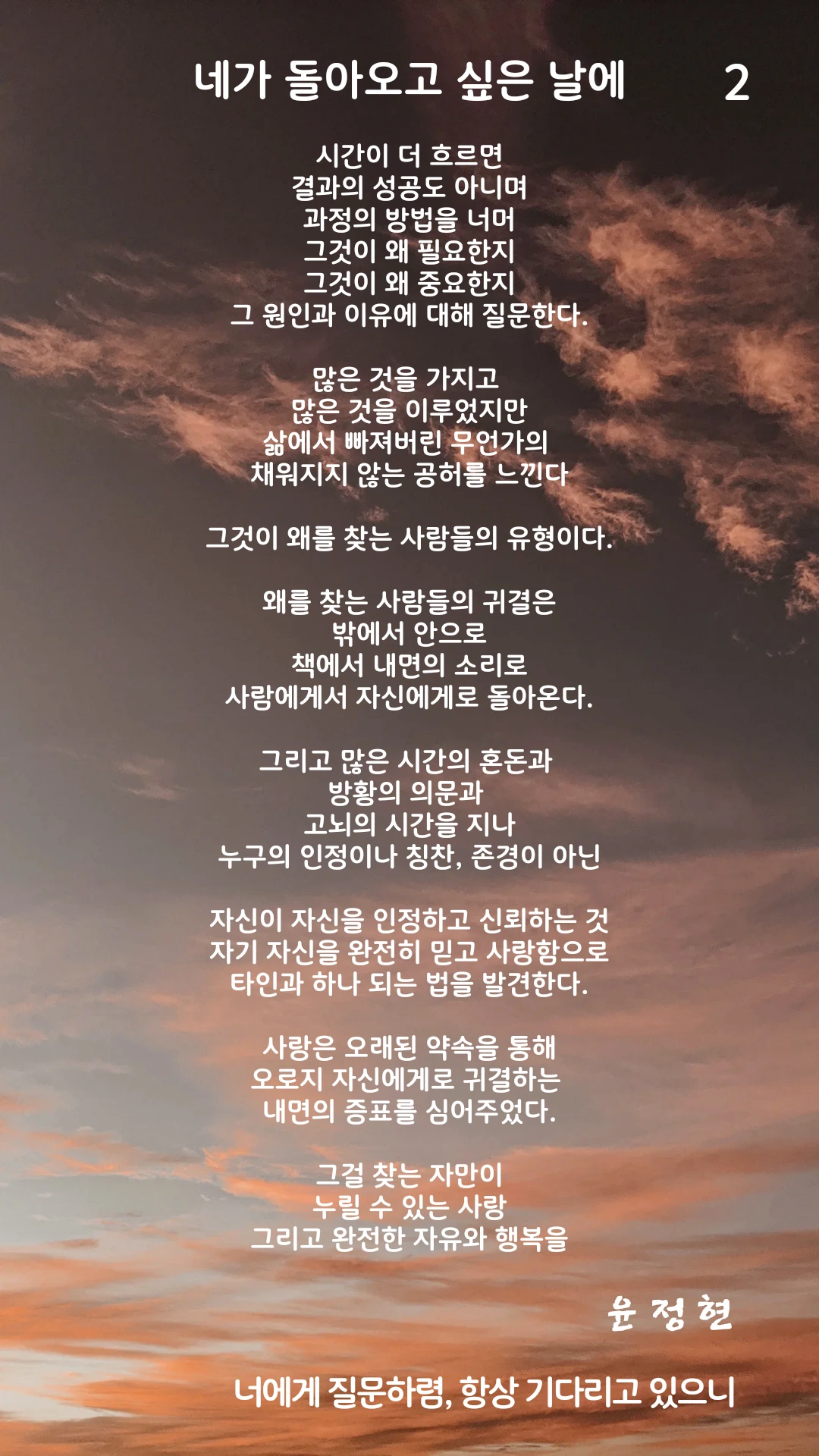 너에게 질문하렴, 항상 기다리고 있으니
