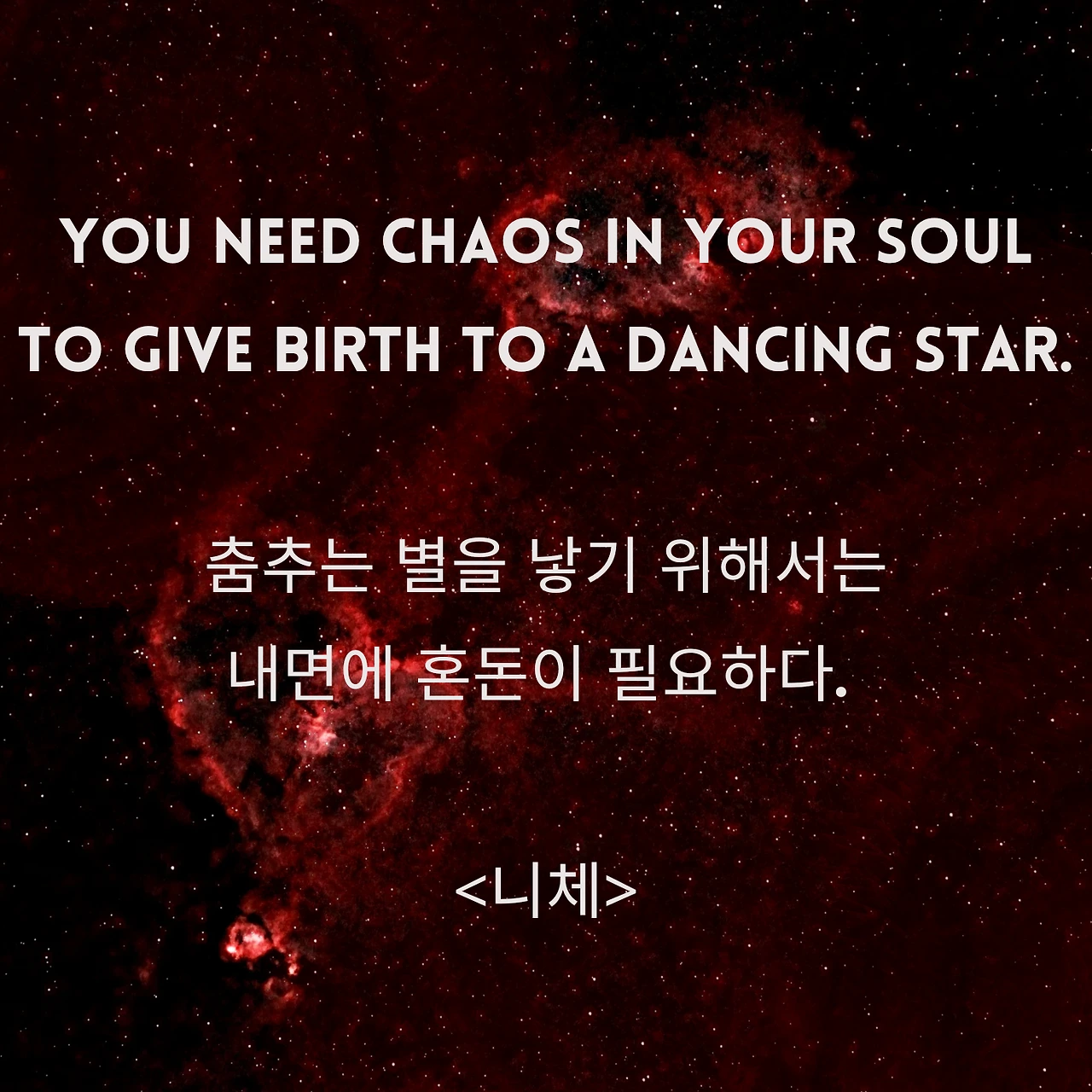 내면의 모든 영혼은 춤추는 별이 되기를 고대하고 있다!