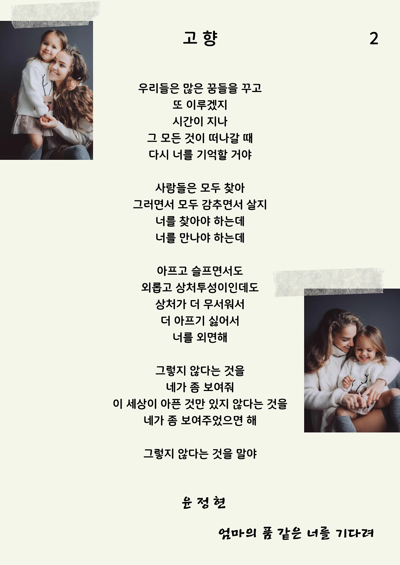 엄마의 품 같은 너를 기다려