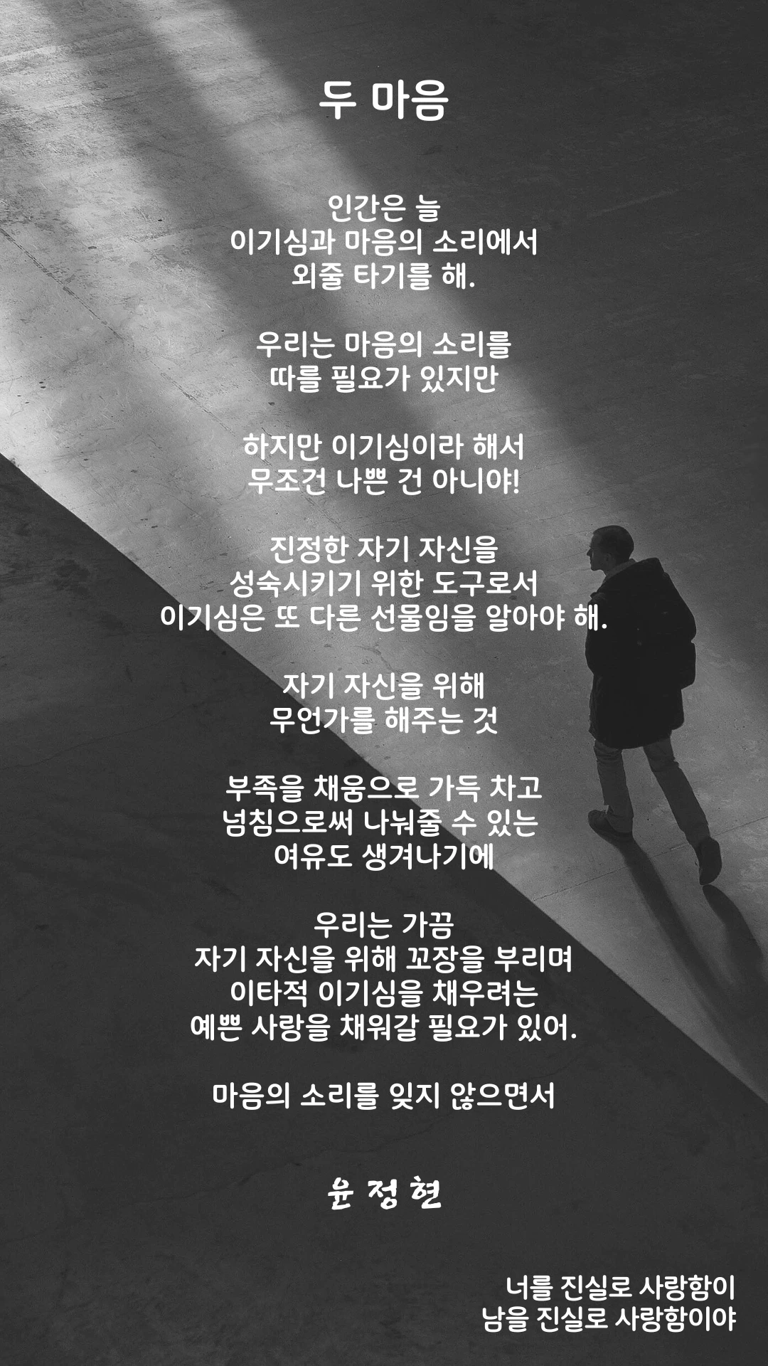 너를 진실로 사랑함이 남을 진실로 사랑함이야!