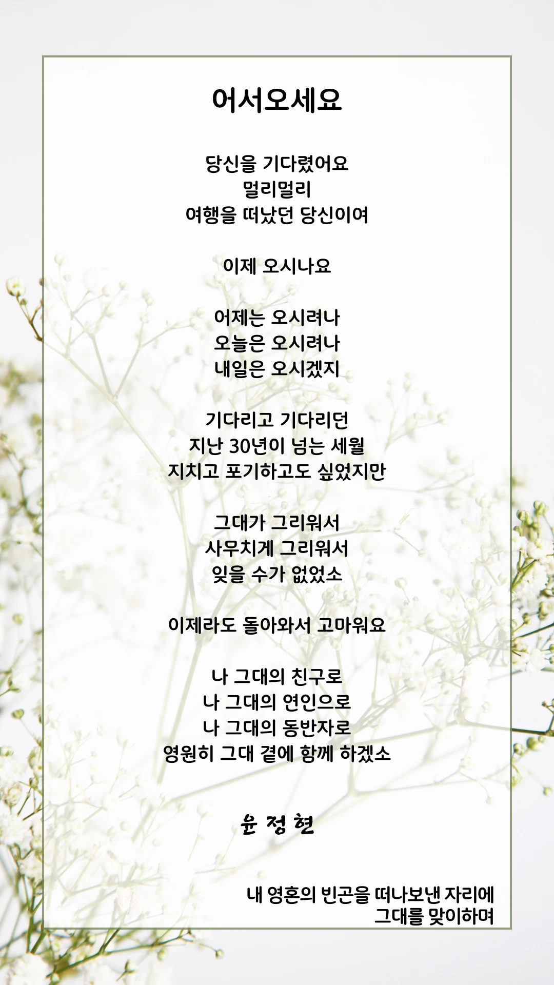 내 영혼의 빈곤을 떠나보낸 자리에 그대를 맞이하며
