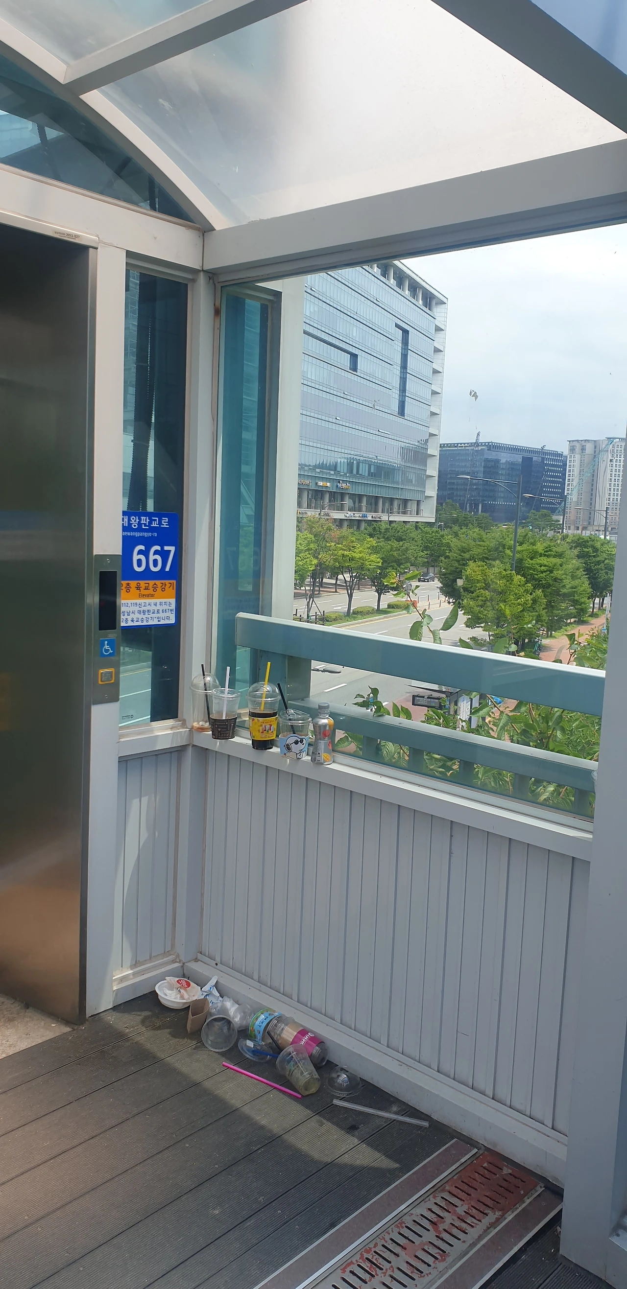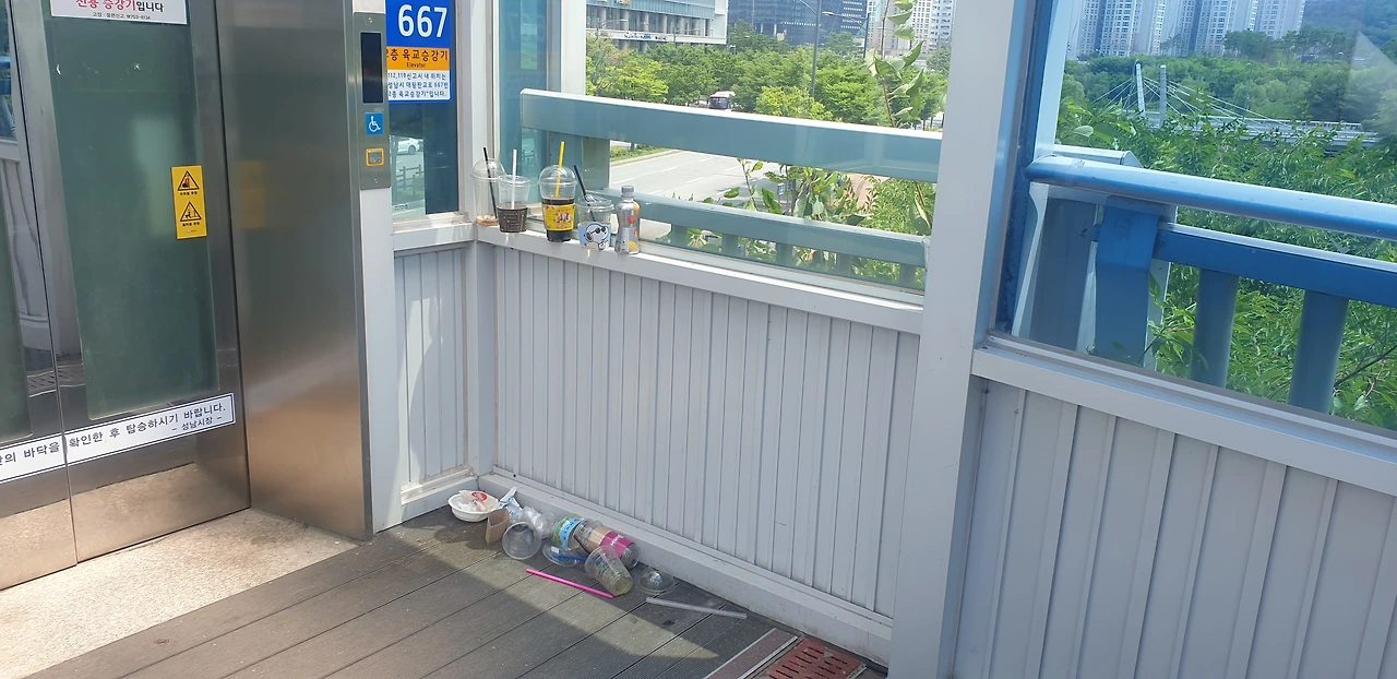 어제 토요일 지인 자녀 결혼식에 참석하기 위해 분당에 갔다. 그곳 멋진 다리를 지나 가는데, 그 중간 엘리베이터 옆에 잔뜩 놓인 쓰레기들이 눈살을 찌푸리게 하였다.