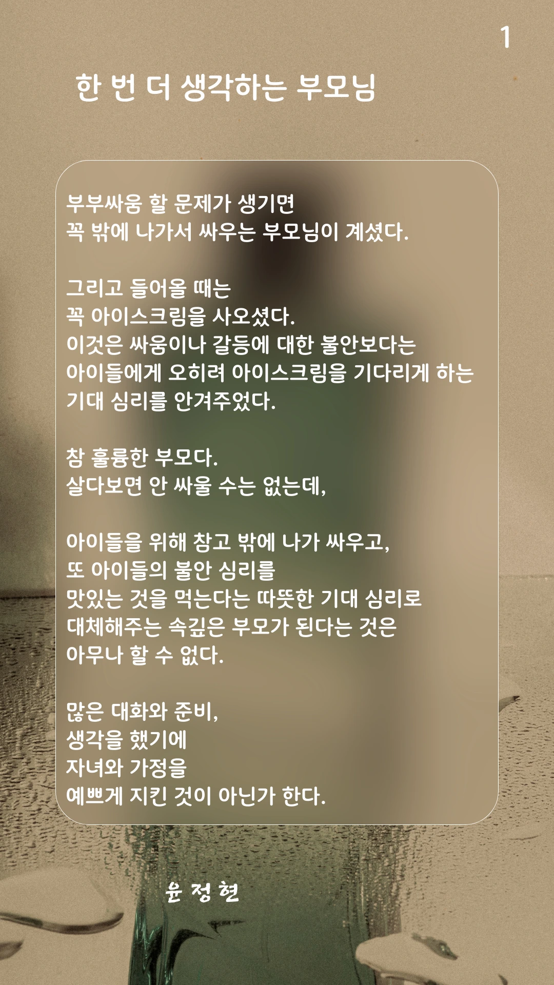 꼭 밖에 나가서 싸우는 부모님이 계셨다.