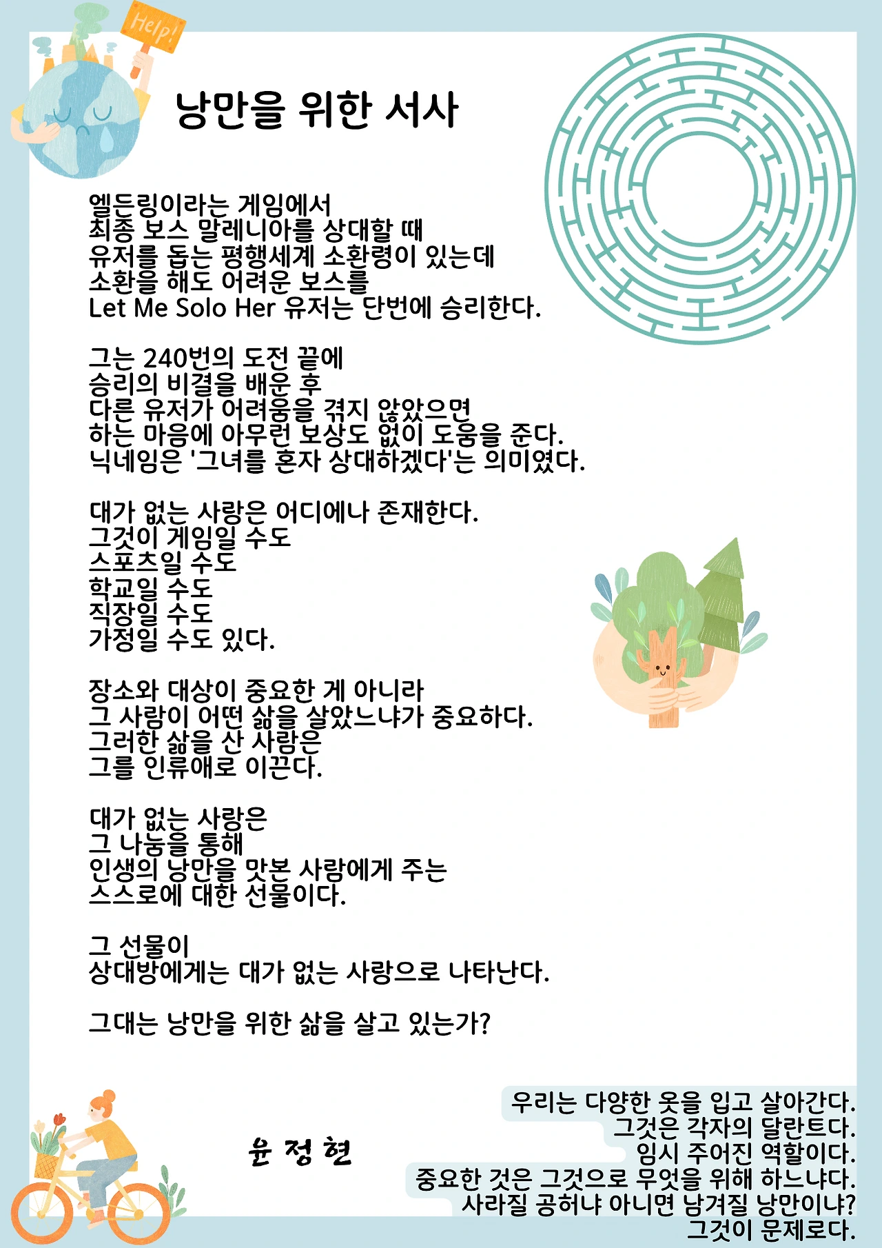 하는 마음에 아무런 보상도 없이 도움을 준다.