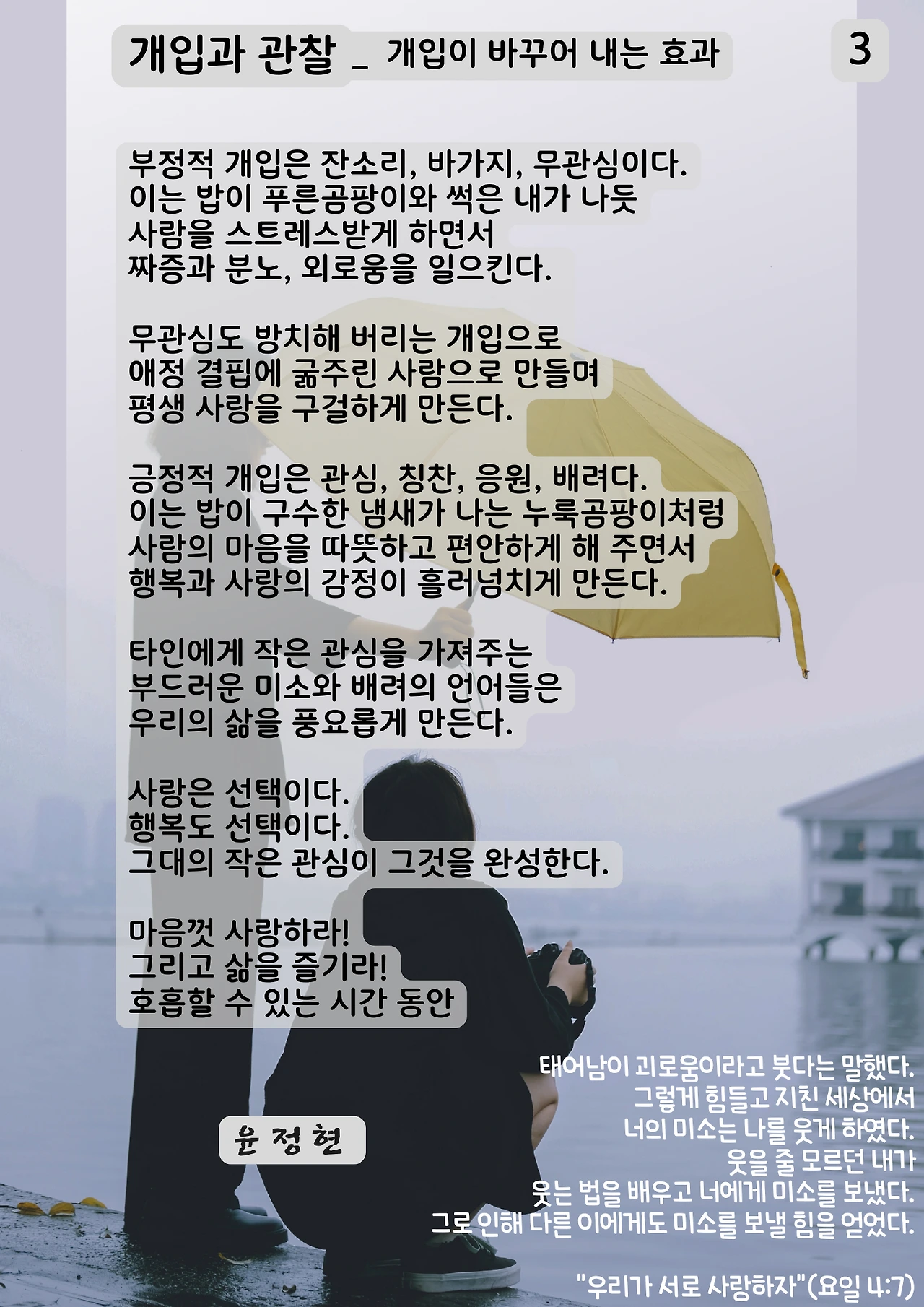 "우리가 서로 사랑하자"(요일 4:7)