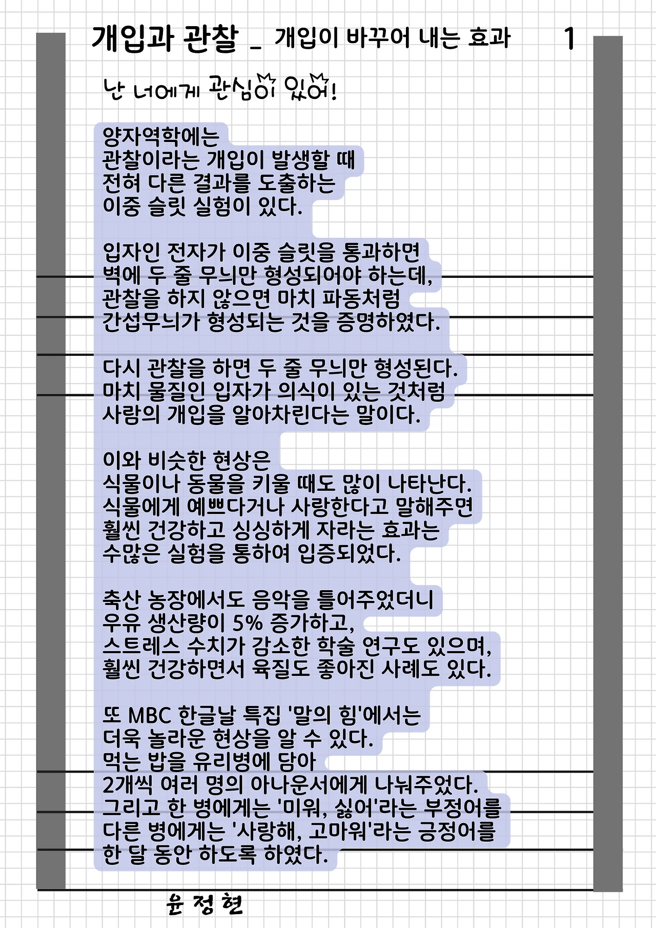 긍정적 개입은 관심, 칭찬, 응원, 배려다.
