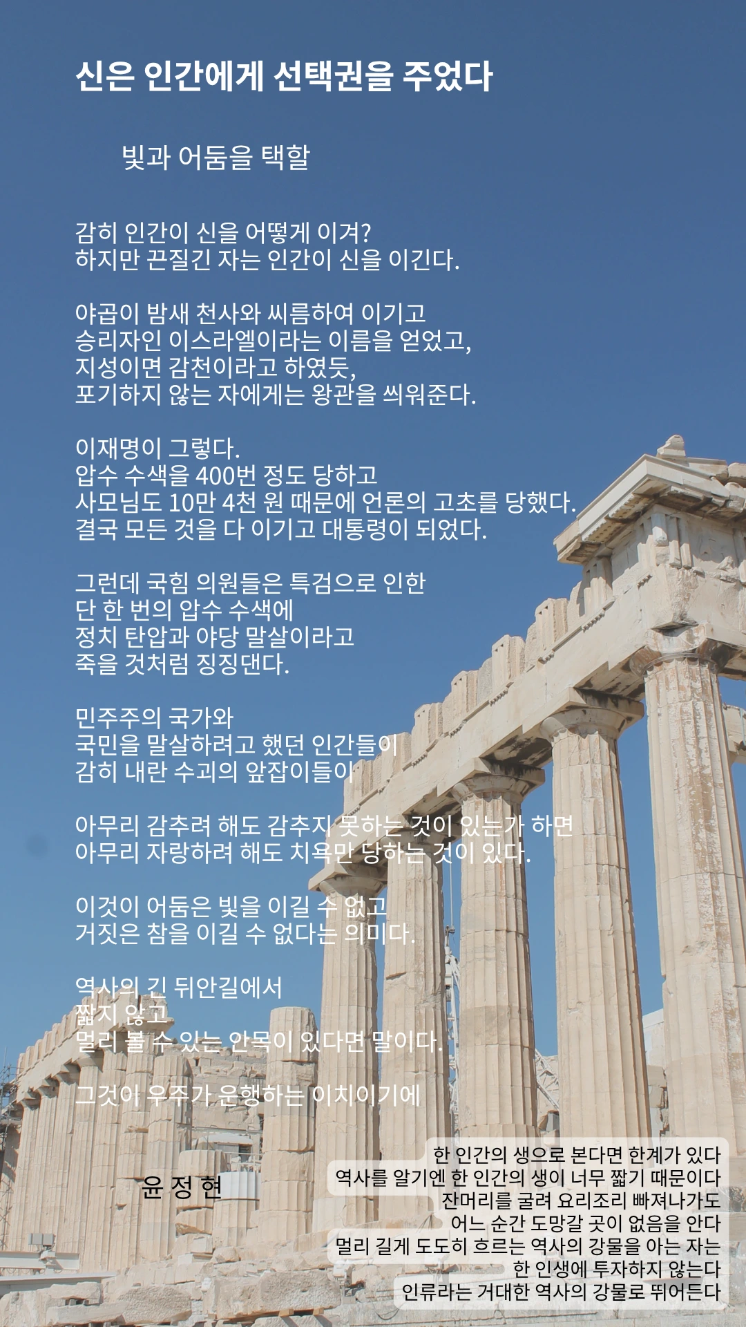 멀리 길게 도도히 흐르는 역사의 강물을 아는 자는