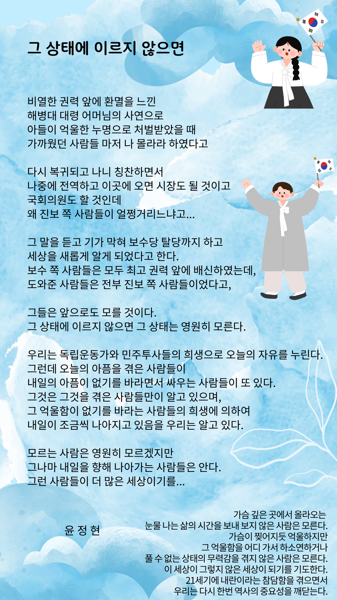 그 억울함이 없기를 바라는 사람들의 희생에 의하여