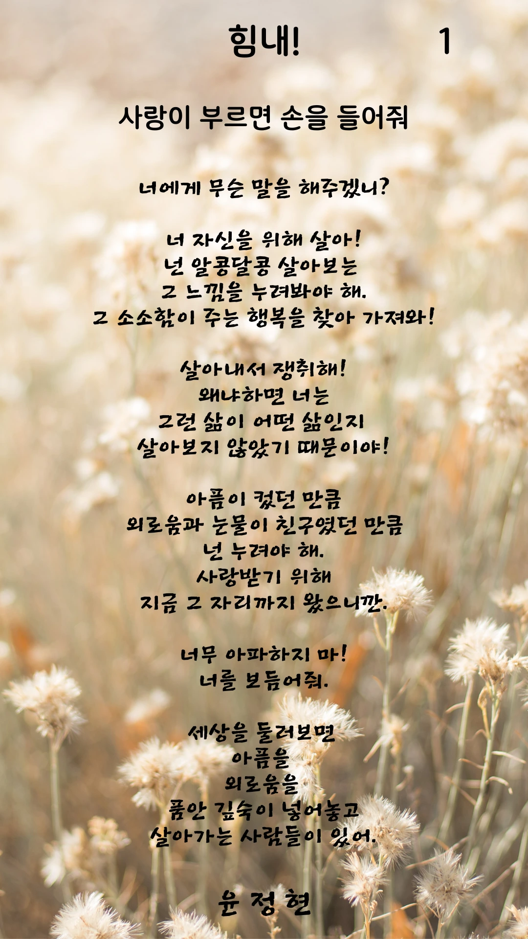 사랑이 너를 부르기를 기도해.