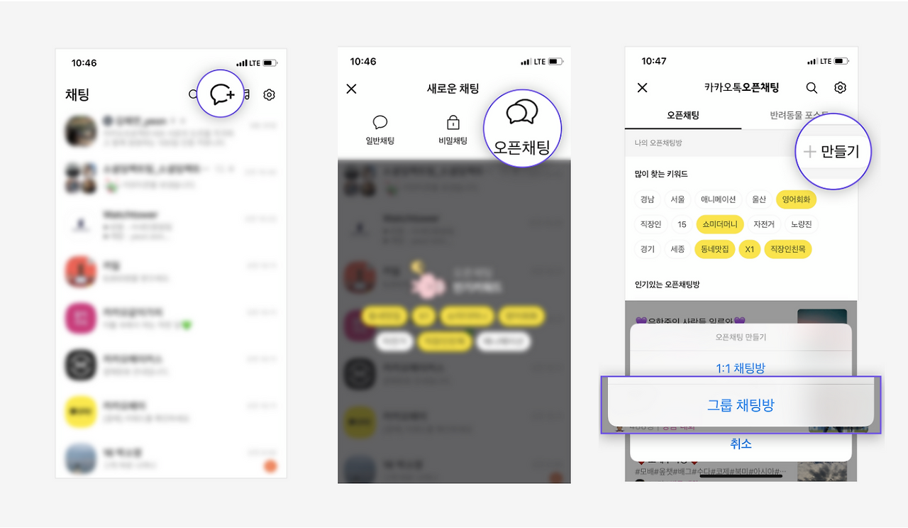 오픈채팅방 개설 방법을 알려드려요!