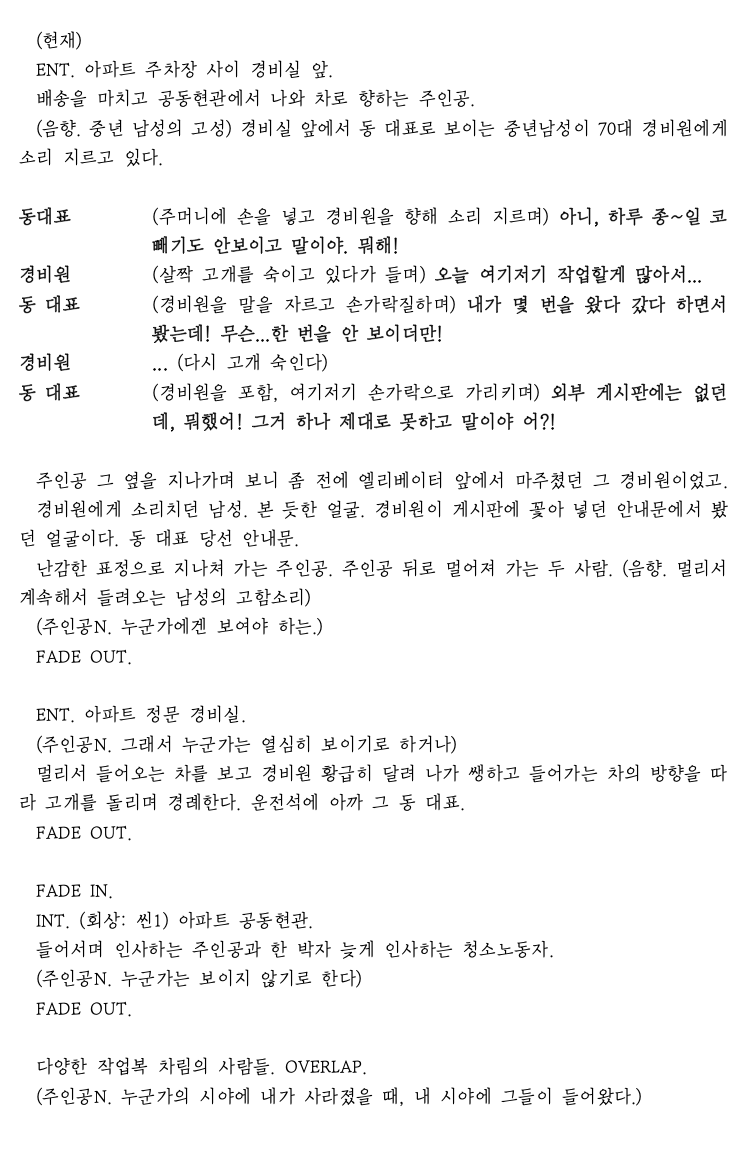 그 아파트는 청소노동자나 경비원 분들이 주민들과 인사를 주고받는 분위기가 아니었습니다.