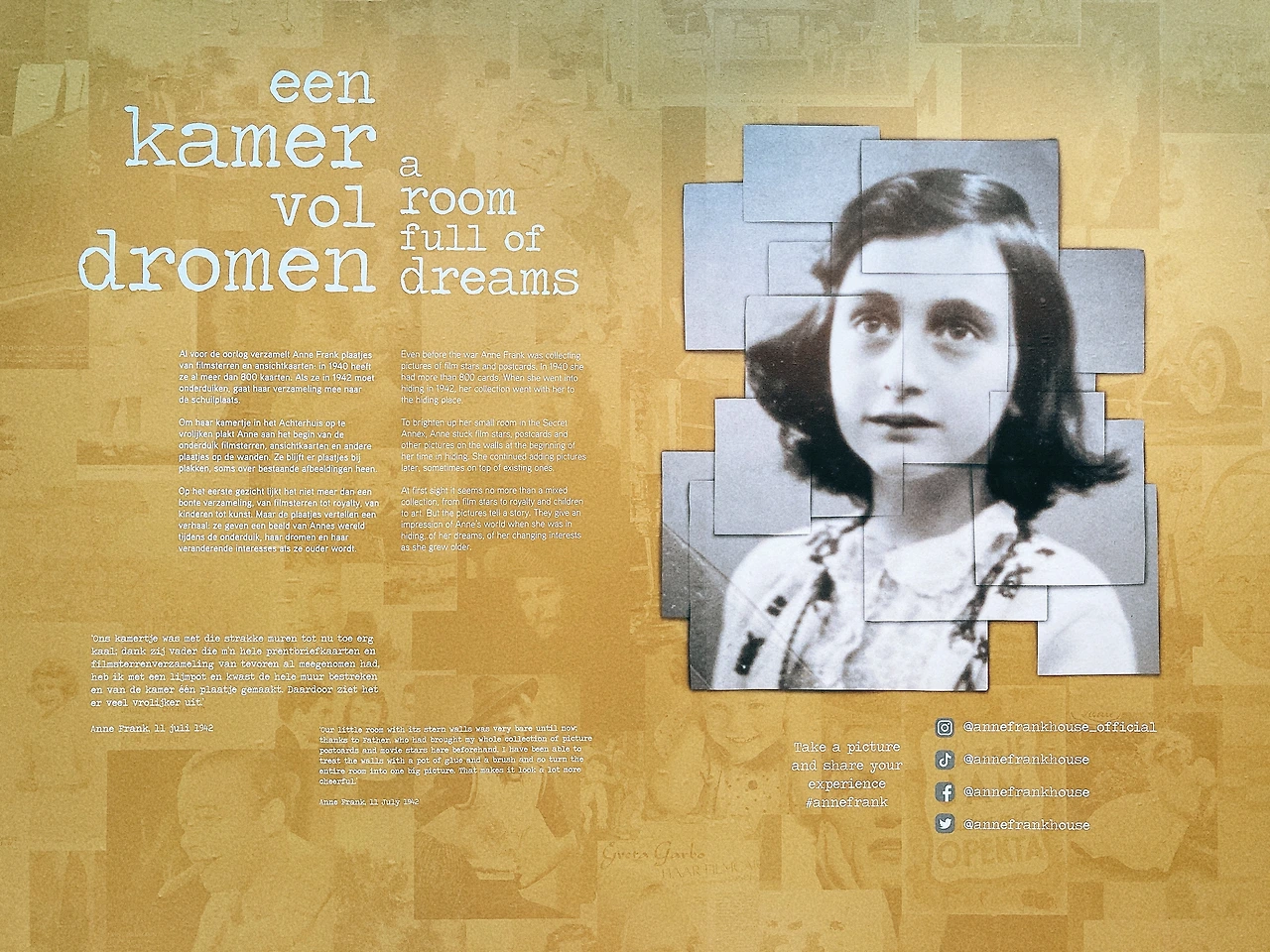 좁은 계단과 은신처의 방, 벽에 붙어 있던 사진들과 메모를 보면서 마음 한쪽이 먹먹해졌다. 그곳을 걸으며 어린 소녀와 그녀의 가족이 겪었을 시간을 상상해 보았다. 일기를 적었던 방을 직접 방문해 보니 안네가 느꼈을 막막한 미래에 대한 두려움이 더 깊게 와닿는다.