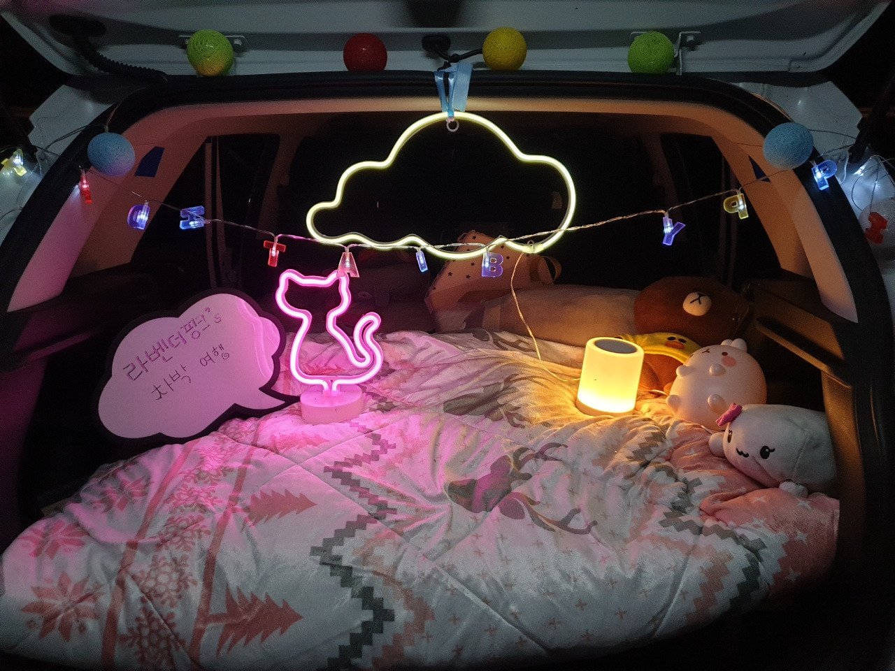 1. 트렁크 등 끄는 법: 처음 차박을 갔을 때, 트렁크 등을 끄는 법을 몰랐던 터라 애니카를 부를 뻔했다. 별생각 없이 트렁크를 열어두다 보니 트렁크 뒷 조명이 계속해서 켜져 있게 되었는데, 주변이 밝을 때는 모르다가 해가 져서 주변이 어두워지자 그제야 트렁크 불이 들어와 있었음을 눈치챈다. 왜 멋들어지게 트렁크 문을 한껏 열어젖힌 차박 사진과 감성 젖는 분위기에 취한 글들만 많고, 트렁크 불이 들어왔을 때 방전을 조심해야 한다는 주의 글은 한 번도 보지 못했을까.